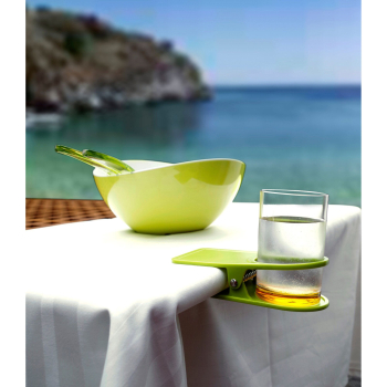 TrinkClip für Tassen, Gläser, Vasen, kleine Blumentöpfe und vieles mehr. TrinkClip einfach an die Kante eines Tisches oder einer Fensterbank klemmen und den zu fixierenden Gegenstand in die dafür vorgesehene Öffnung stellen. In verschiedenen Farben erhältlich.